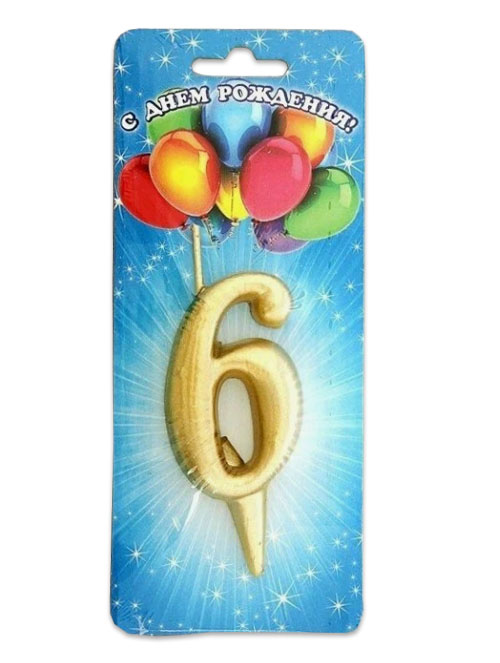 Свеча цифра Золотая 6